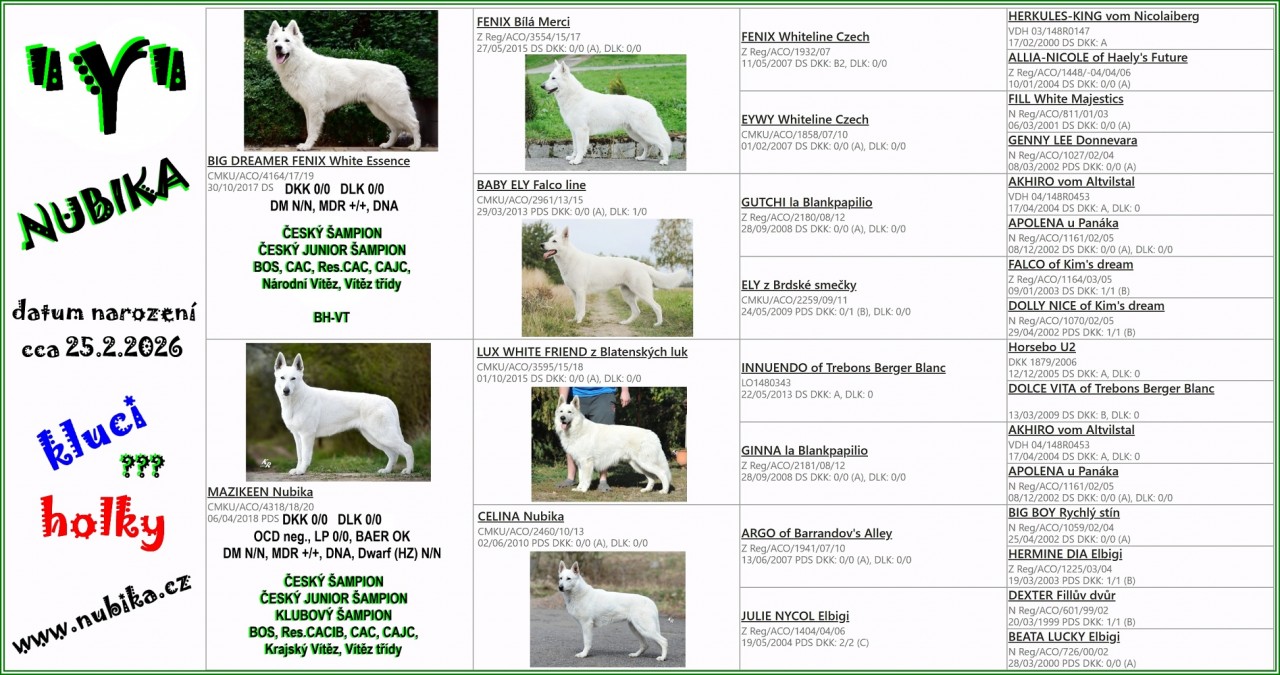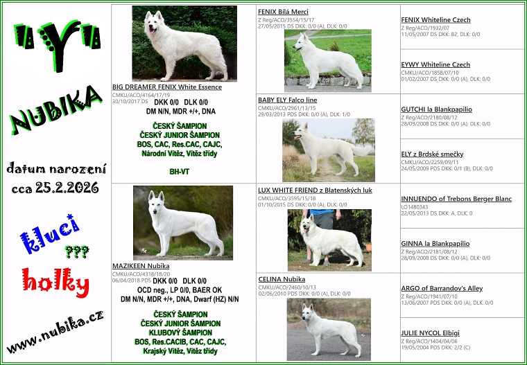 matka: Mazikeen Nubika & otec: BIG DREAMER FENIX White Essence